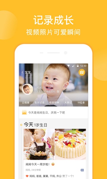 2、亲友一起记录宝宝的成长过程,实时了解宝宝的发育状况,让宝宝成长不再孤单。