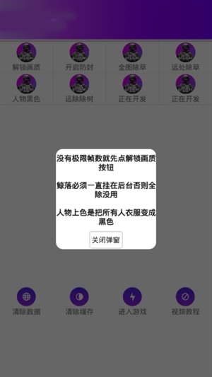 全能工具箱和平精英可以在游戏中立于不败之地,轻松击败敌人,它有许多强大的功能,如画质修正,人物透视,远距离除草和人物飞行,适用于很多不同的场景,很多比拟大的视频和文件!