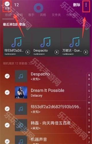 进入本地音乐界面,按住一个音乐不放手,直到出现复选框