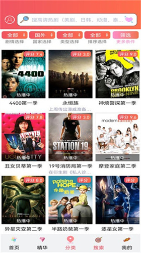 1、打开人人美剧app,进入首页,用户可以通过分类或搜索栏找你需要看的资源。