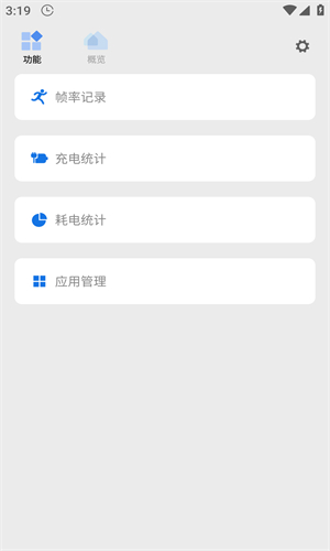 在功能模块中,用户可以进行帧率记录,充电统计,耗电统计,应用管理,活动/服务,温控编辑以及屏幕测试;