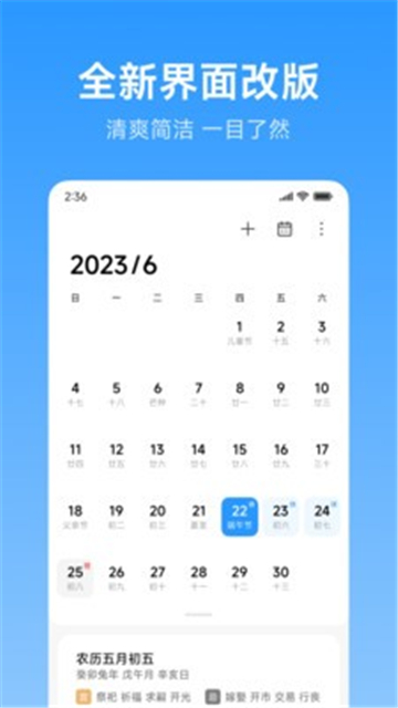 小米日历app是一款全面好用的日历记录创建管理助手。支持日常日程管理,在线进行添加、删除、修改等多种操作更加方便。自定义提醒时间和次数,以免错过重要内容。设定多种模式的视图模式,方便用户查看不同时间段的日程安排。强大的运动不功能,在不同设备上同步日程安排管理更加迅速。强大的智能提醒功能,根据用户的需求进行调整,设定优先级。更有黄历、星座运势、天气预报等多种资讯内容,欢迎大家前来下载体验。