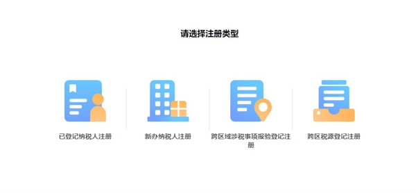 进入“请选择注册类型”界面,选择适用的注册模块进行注册操作。