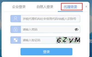 通过输入涉税代理机构社会信用代码/纳税人识别号、密码、输入验证码进行登录。