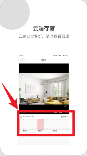 4、在云端回放页面选择日期和时间段,通过下方时间轴拖动进度条,快速定位需要查看的录像片段。