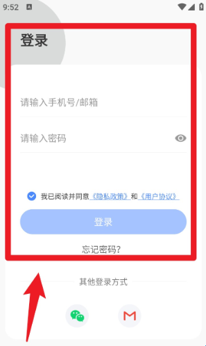 2、注册完成后可直接输入手机号或邮箱进行登录,填写密码并同意协议,点击“登录”按钮进入主页。