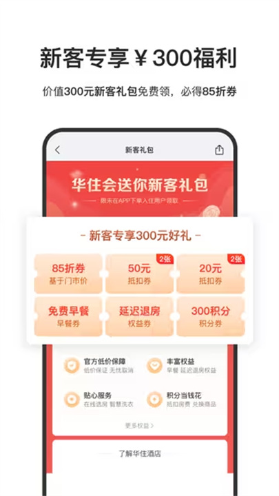 优惠活动专区,华住品牌模块,酒店特色商品等你来探索。