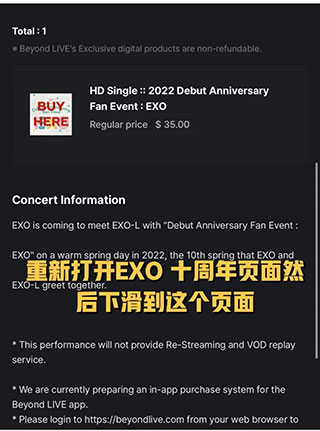 1、首先打开beyond live安卓版,点击自己想要购买的演唱会,就拿exo来举例;