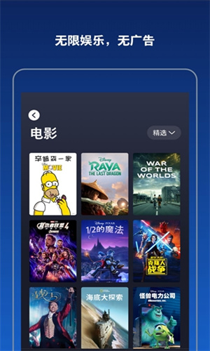 2、迪士尼、皮克斯、Marvel、星球大战、地理及Star 提供的独家全新原创电影剧集。