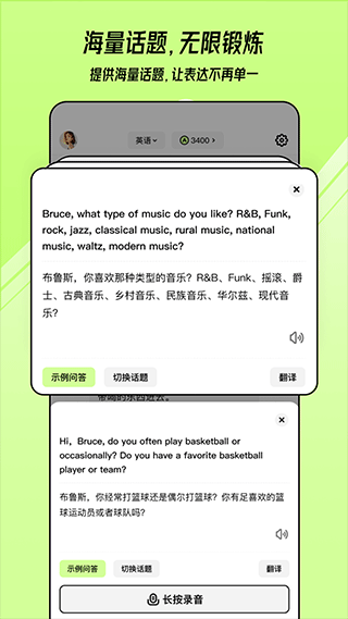 使用我们的应用,你可以轻松地在不同的话题之间切换,确保你在语言学习之旅中永远不会感到无聊或停滞不前。无论你是想讨论时事,谈论你的爱好,还是练习你的专业技能,我们的应用程序都能满足你!