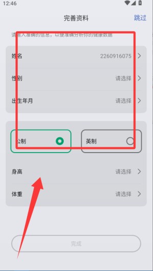 1、打开app后完成健康问卷,系统会根据你的年龄和体重生成初始健康评分和改善建议。