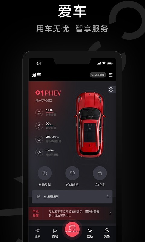 1、手机控车通过该应用就可以完成手机和汽车的联动,实时的掌握到汽车具体的状态;
