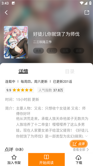 1、漫画园免费版支持个性化图书管理,可以将自己喜爱的漫画加入到书架中,方便后期的查看和管理。