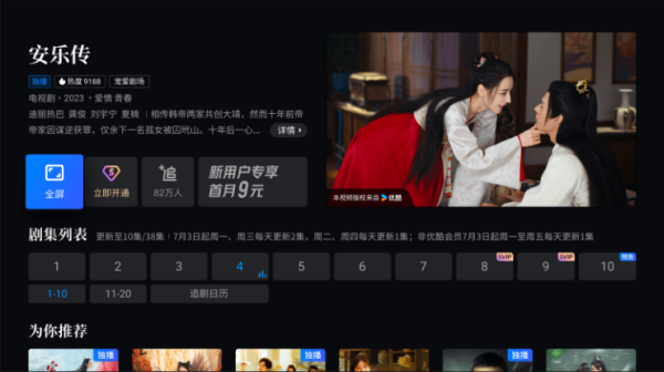 专门为大屏幕设计的人机交互界面,为用户提供舒适休闲的视频观看体验。优酷CIBN酷喵影视拥有丰富的节目资源,前端提供一流的用户体验,完美适配各尺寸大屏幕,让你轻轻松松看优酷!整合中国国际广播电台、优酷与国内20多家CP的优势资源,CIBN高清影视让你享受海量正版高清视频,产品中新闻、电影、电视剧、综艺、动漫、纪录片应有尽有,总节目量达330万小时,每周节目更新量可达1000小时。