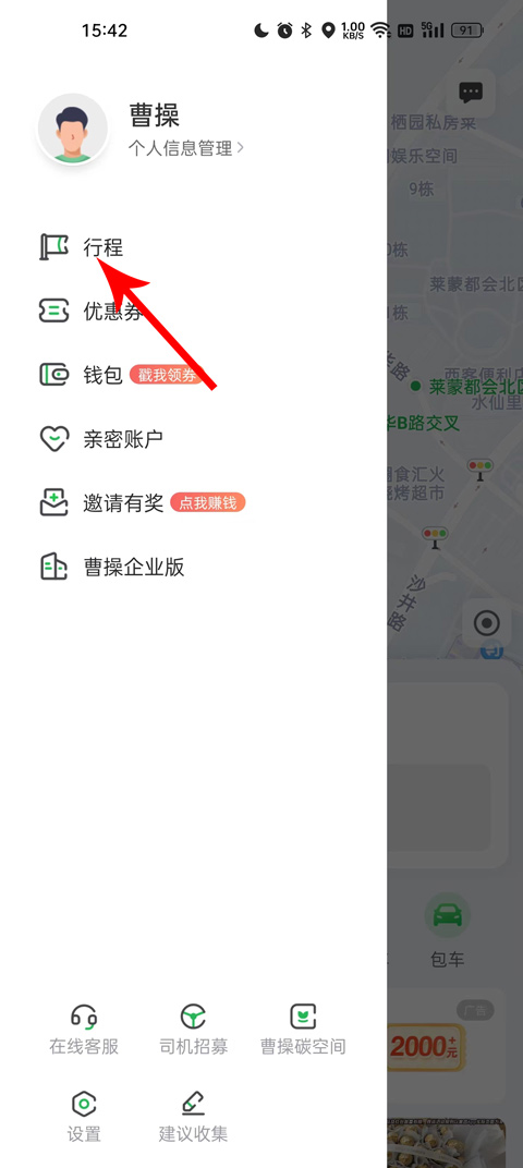 3、选择功能页面中的第一个行程点击进入;