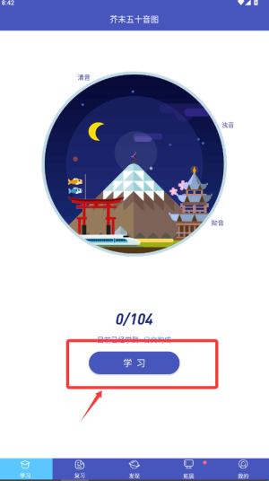 2、点击学习清音图标,进入学习页面,专项练习学习清音
