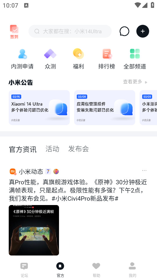 小米社区是小米粉丝的聚集地,也是科技爱好者的交流乐园。在这里,你能第一时间获取小米新品动态、技术解析,参与官方活动赢取丰厚福利。社区内用户活跃,分享使用经验、玩机技巧,还能反馈产品问题,助力小米产品优化。无论是资深米粉,还是初入小米世界的新手,都能在小米社区找到归属感,与众多同好一起探索科技的无限可能。