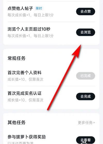 4、在打开的任务中心完成全部任务即可快速升到社区4级。