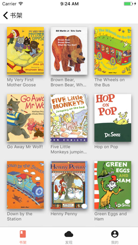 3、这个软件中,所有适合孩子学习的英文绘本都可以添加到书架上。通过书架选择儿童学习绘本很容易