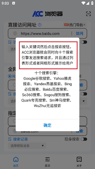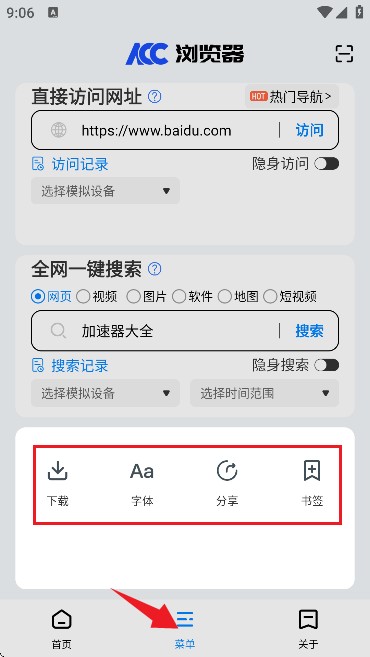 1、下载安装好这款ACC浏览器APP,然后打开,