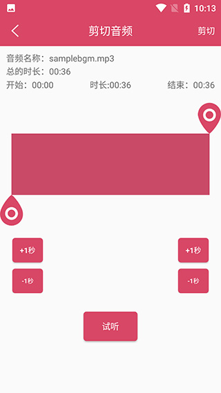 音频剪切:本地音乐库,自定义音频裁剪范围,剪出你要的特别精彩。
