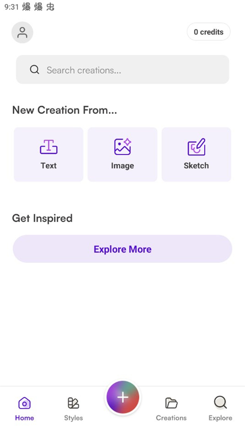 1、进入到软件之后点击屏幕下方的+号进入创作页面。