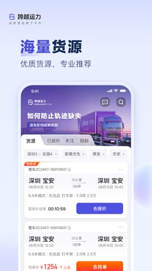 跨越运力app是一款专为货物运输司机打造的接单服务平台,能借助软件强大的调度系统让你接取到源源不断的订单获取收入。可避免司机遇到单程出行回来空车的情况,软件会根据附近的货源为平台的司机提供相应的货物运输单,让司机能尽可能获得更高的收入。发布的订单类型会根据危险程度决定报酬,对于接单的司机也有一定的驾照评级要求,让司机接单赚不停。