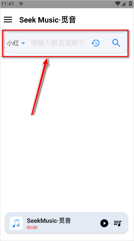 1、在本站下载安装好SeekMusic觅音app,运行软件并且授权,然后在首页点击搜索你想要的音乐