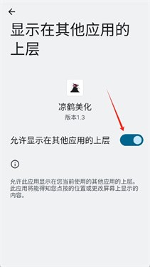 1、打开凉鹤美化包专用框架。根据提示开启“显示在其他应用的上层”权限。