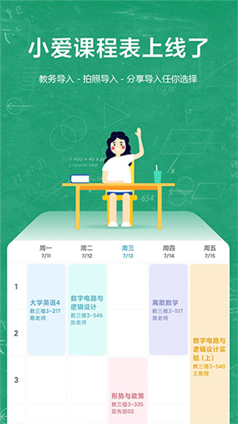 1、包含地点、教师、课程内容等,小爱课程表app下载官网最新版为你展示详细课程信息。