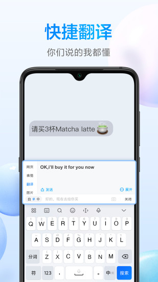 2、海量最新词加上智能精准的联想匹配,打字的速度快过思想,让世界更懂你。