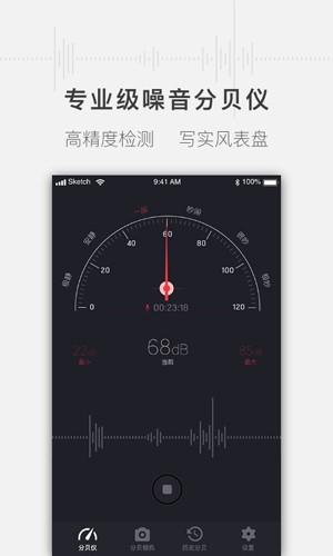 1、实时检测:即时捕捉并显示当前环境的噪音分贝值。