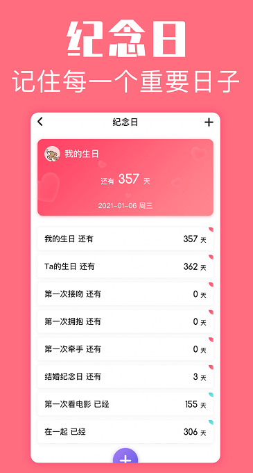纪念日:提醒功能为你们守护每一个值得纪念的日子。