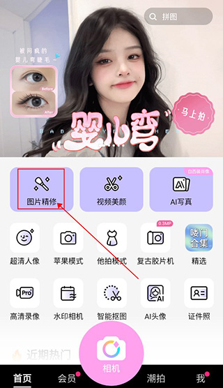 之后用户可以进入首页,选择上方的图片精修进入美图页面