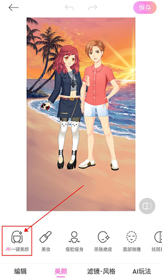 用户一键美颜之后,可以点击右上角的保存,保存自己的美颜图片