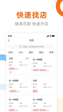6、快速找店:拥有丰富、优质的店铺,各类商铺,各种价格,拥有出售店铺,你可以直接拥有属于自己的商业基地、也有转让店铺,收益不好再选位置。