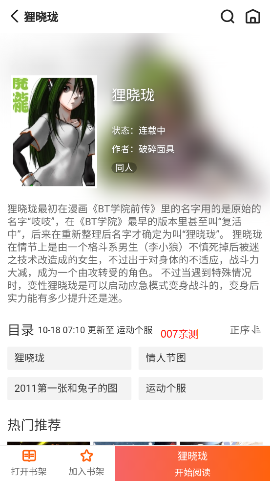 2、然后点击想要看的漫画,会出现详细的漫画介绍。