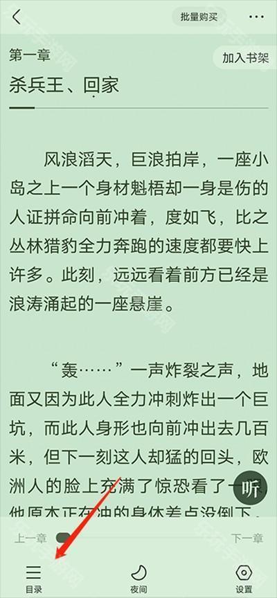 2、点击进入小说阅读,点击左下角目录,如图所示