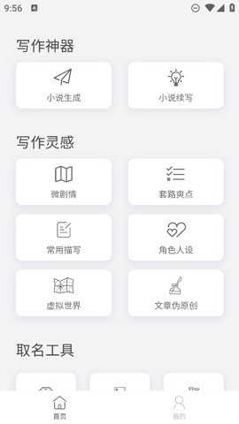 1、在本站下载安装后,打开软件,进入软件“首页”在“写作神器”栏中可以选择相应的功能为小说编写框架。