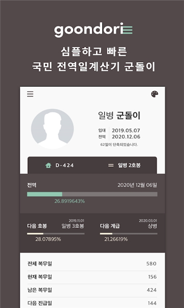 goondori是一款专为韩星打造的服兵役查看软件,通过它能浏览到最新的男星动态信息,实时掌握韩男星服兵役情况以及退伍时间等内容,让你无需四处搜寻信息,在一个平台就能及时关注到韩星最新动态,无论是想知晓偶像服役进展,还是了解当红男星相关状况,goondori都能为你提供便捷且全面的韩星服兵役资讯服务。
