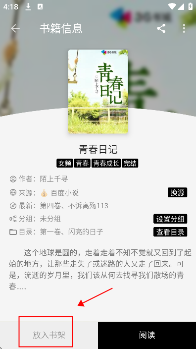 用户们可以直接把书籍加入书架,或者直接点击阅读进入阅读模式