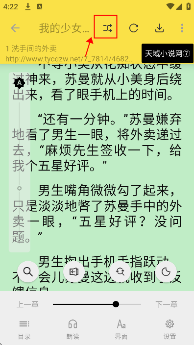 用户们进入阅读模式后,如果发现没有新章节,可以点击换源图标,切换小说书源