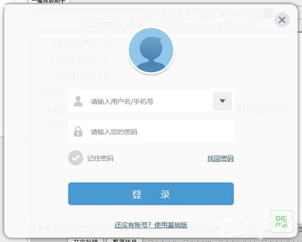 1、打开之江汇互动课堂软件,输入账号登录,没有账号可以选择基础版登录查看内容;
