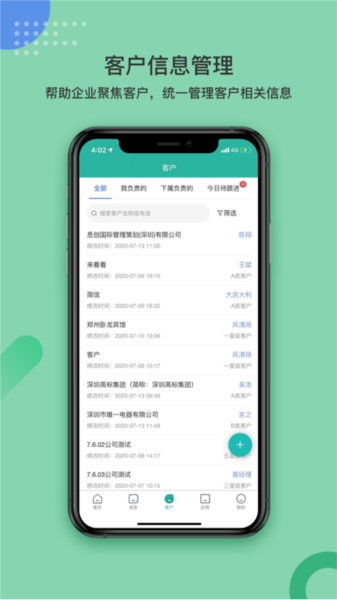 简信CRM v4 app是一款在企业销售管理领域广泛应用的软件,其具备海量客户数据资源,支持用户随时利用关键字进行搜索,能帮助企业在众多数据中快速发掘潜在客户,无论是对于拓展业务渠道,还是精准把握市场机会都有着显著助力,为企业销售团队更高效地开展工作、提升销售业绩提供了有力的工具支撑。