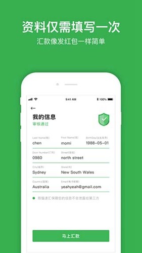 熊猫速汇app是专为海外华人打造的跨境汇款掌上服务平台,服务范围覆盖中国、新加坡、日本、韩国、美国、加拿大、澳大利亚等多个海外国家,其具备强大安全的加密汇款通道,可有效避免个人信息泄露,同时拥有银行级别的资金保障,确保无人能在未经本人授权的情况下挪用资金,让海外华人向国内或国外汇款更加轻松 。