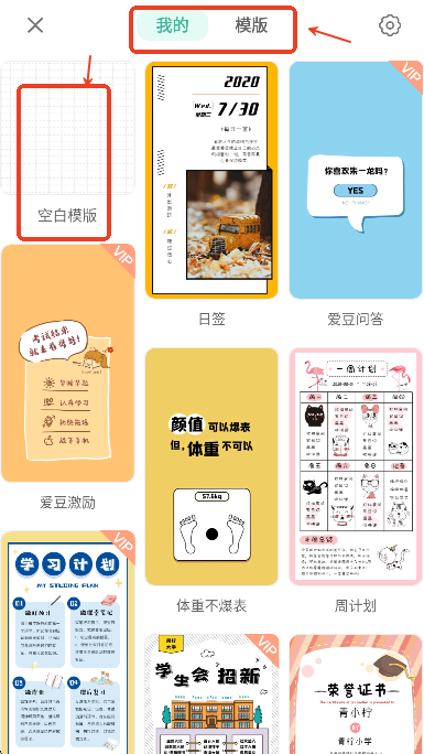 如果是做手账的用户可以进入写手账页面,点击空白模板开启自己的创作之旅啦