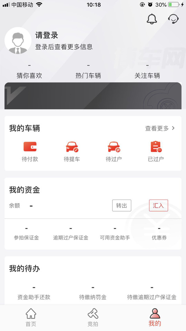5、我的查看关注车辆、优惠券、资质认证、参拍保证金审核等信息。