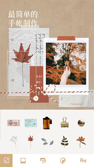 贴纸:丰富的剪贴画、胶带、手绘图案等拟真素材