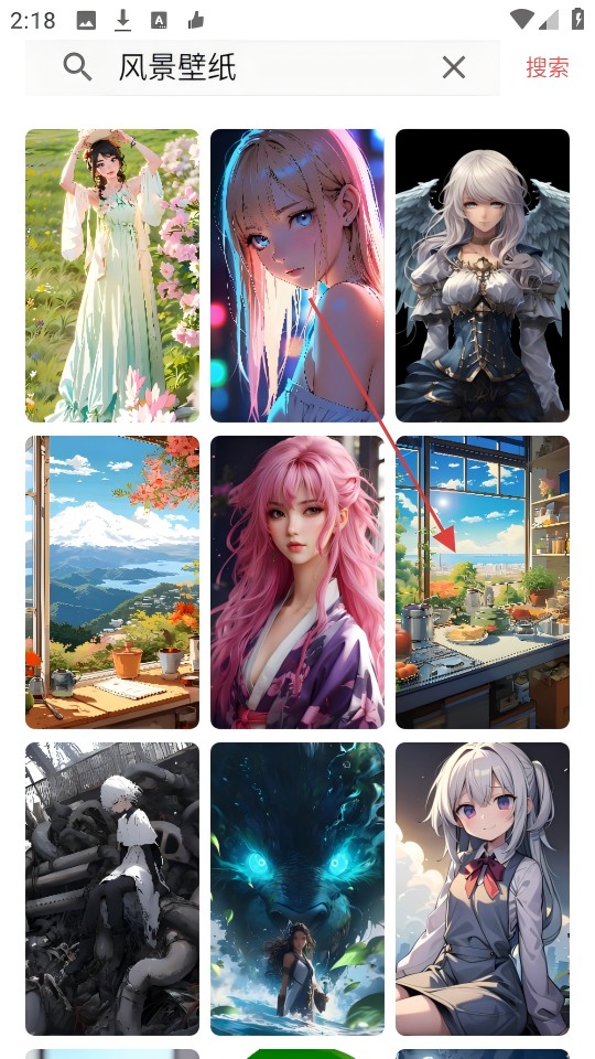 3、在搜索结果中,点击想要查看的壁纸,进入壁纸详情页。