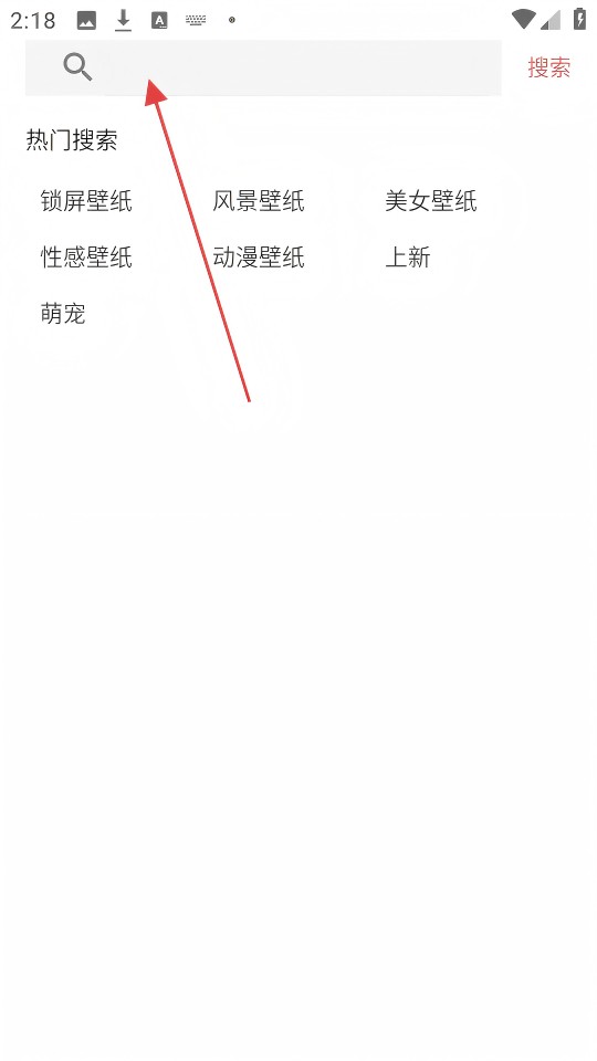 1、点击页面顶部的搜索图标,进入搜索界面。